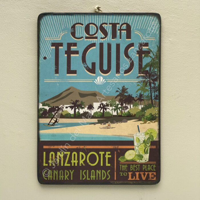 This vintage-style wooden plaque, handcrafted and illustrated by Mad Mac, encapsulates the sporty and relaxed spirit of this corner of northern Lanzarote. A handcrafted piece to hang and collect.